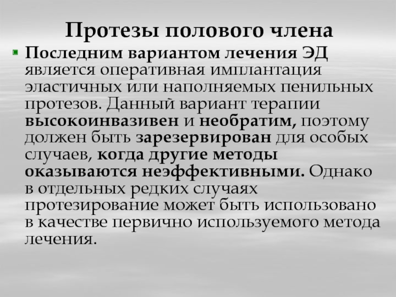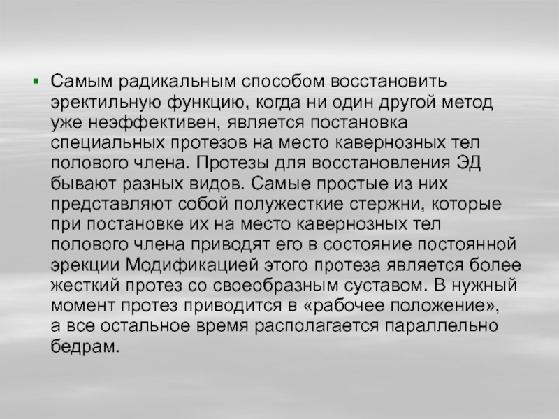 Слайд 40Самым радикальным способом восстановить эректильную функцию, когда ни один другой метод