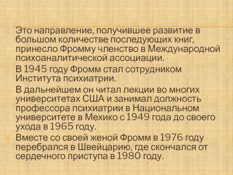 Слайд 7В отличие от Фрейда, Юнга и Адлера, Фромм не имел