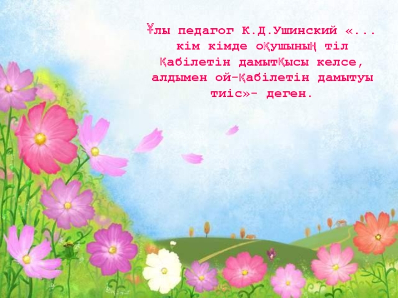 Слайд 11Ұлы педагог К.Д.Ушинский «...кім кімде оқушының тіл қабілетін дамытқысы келсе,