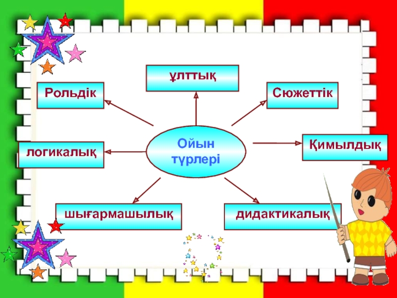 Слайд 10Ойын түрлерін қолдана отырып, баланың ақыл- ойын дамыту.