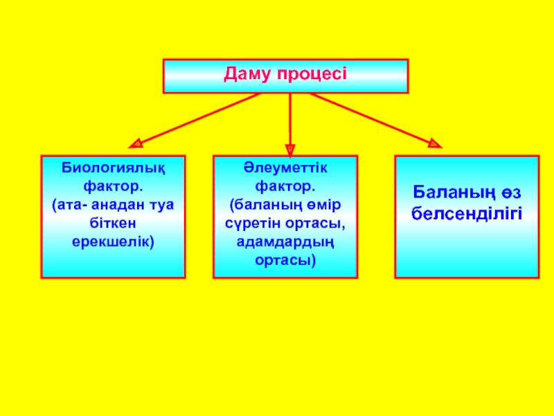 Даму процесіБиологиялық фактор.(ата- анадан туа біткен ерекшелік)Әлеуметтік фактор.(баланың өмір сүретін ортасы, адамдардың ортасы)Баланың өз белсенділігі