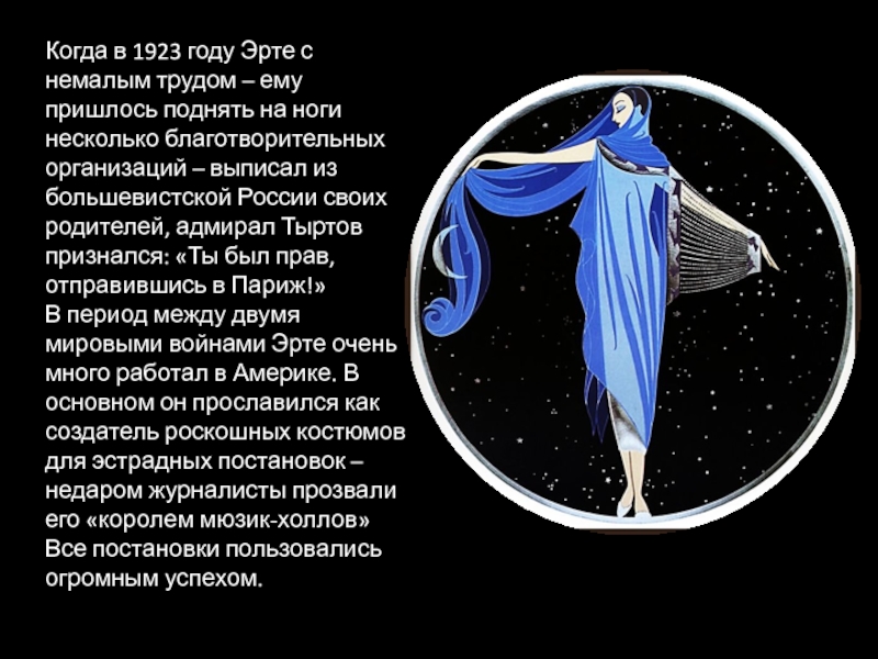 Слайд 11Когда в 1923 году Эрте с немалым трудом – ему
