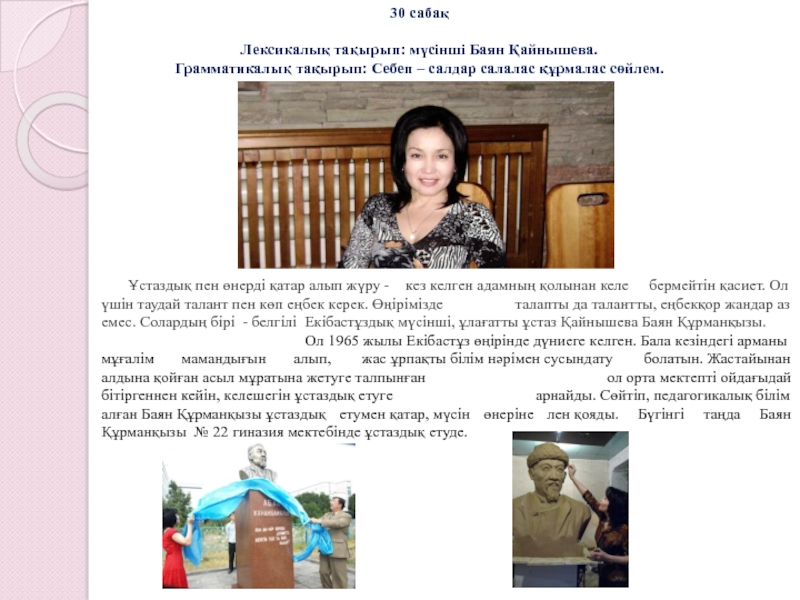 Лексикалық тақырып: мүсінші Баян Қайнышева.