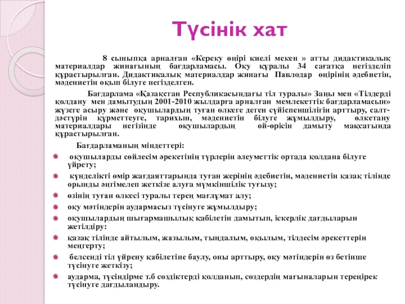 - Түсінік хат ---------------------- ----------------------------------------1 бет