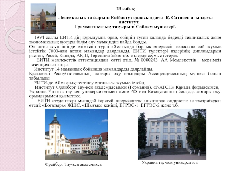 - Екібастұз қаласындағы Қ.Сатпаев атындағы институт ----------50-51 бет