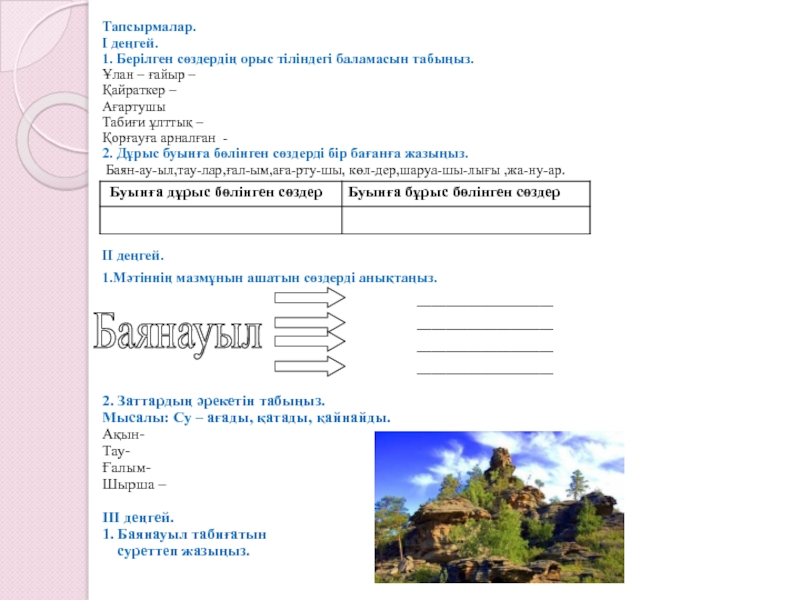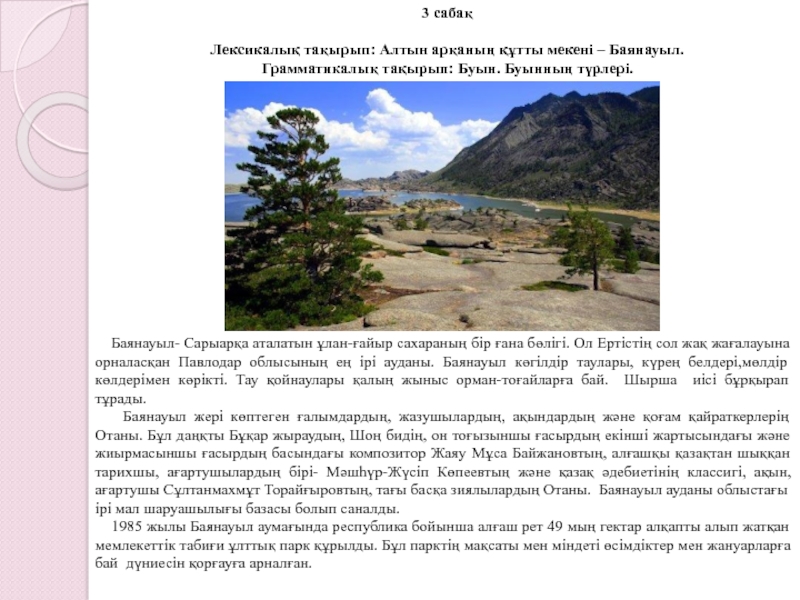 - Баянауыл ұлттық мемлекеттік табиғи паркі --------------------------72-73 бет