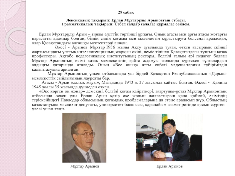 Лексикалық тақырып: Ерлан Мұхтарұлы Арыновтың отбасы.