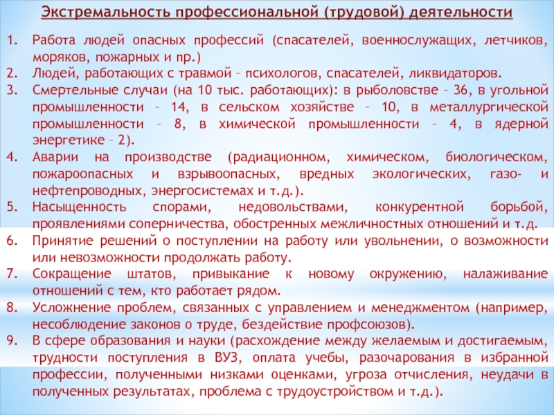 Слайд 2Экстремальность профессиональной (трудовой) деятельности