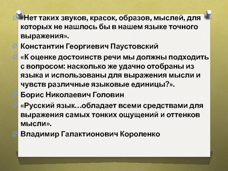 «Русский язык…обладает всеми средствами для выражения самых тонких ощущений и оттенков мысли».