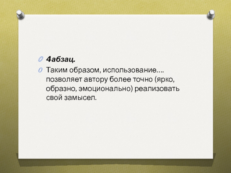 Таким образом, использование….позволяет автору более точно (ярко, образно, эмоционально) реализовать