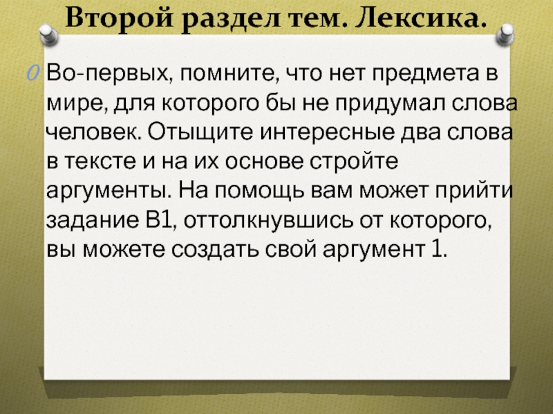 слова в тексте и на их основе стройте аргументы. На помощь вам может прийти задание В1, оттолкнувшись от которого, вы можете создать свой аргумент 1.