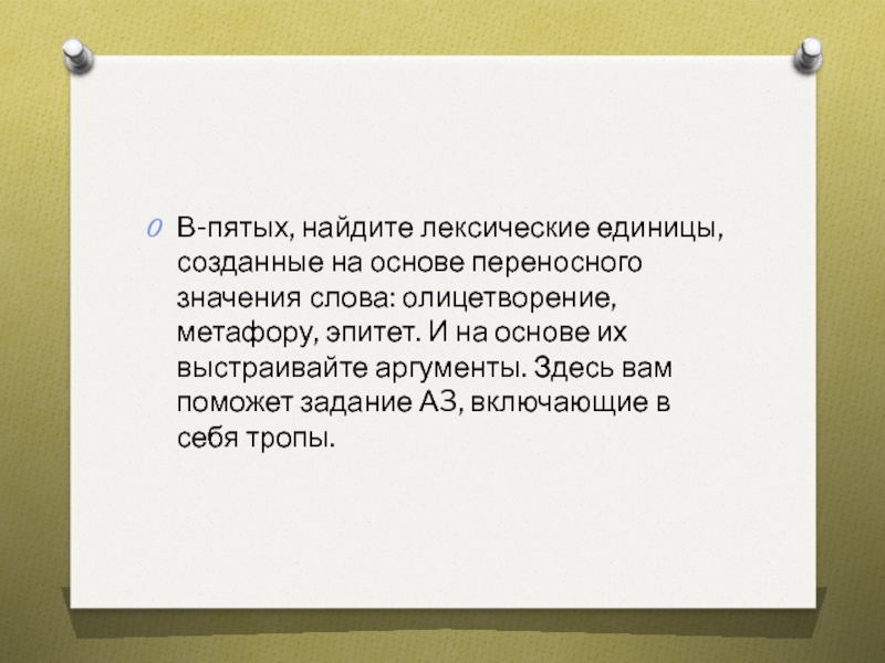 Слайд 7В-пятых, найдите лексические единицы, созданные на основе переносного значения слова: