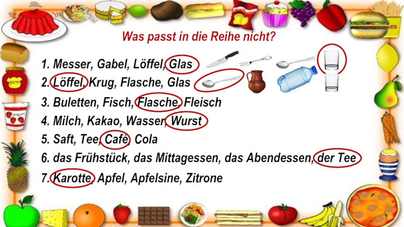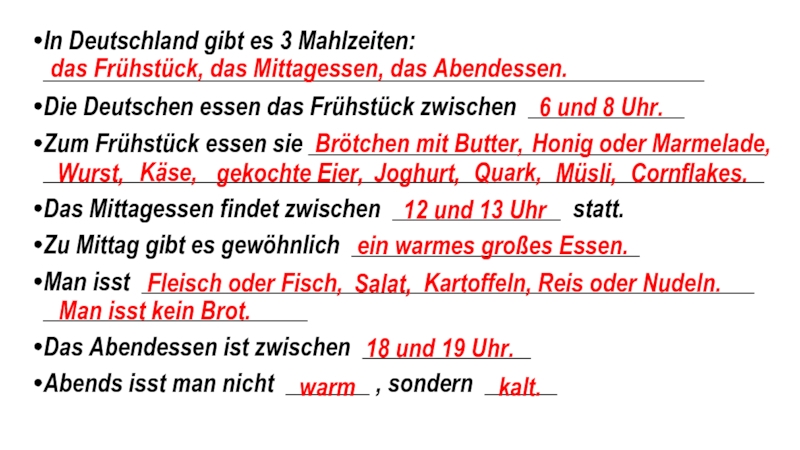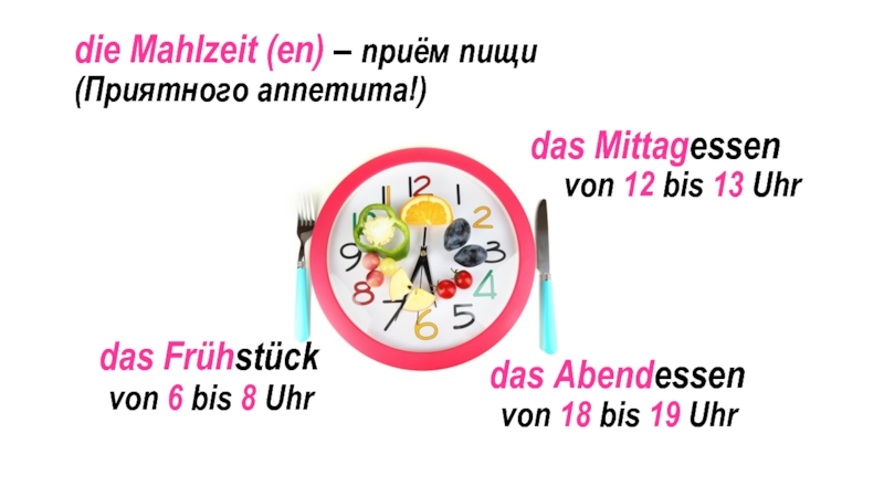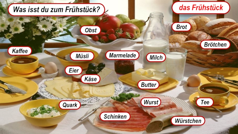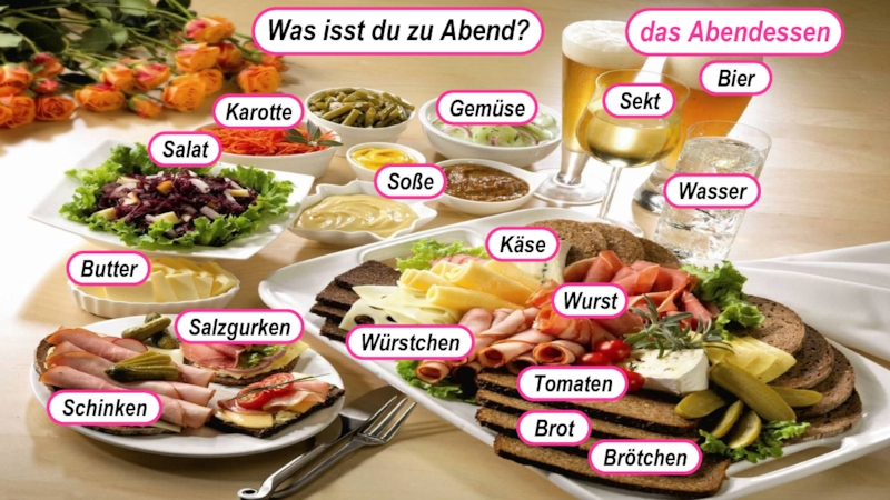 6. das Frühstück, das Mittagessen, das Abendessen, der Tee