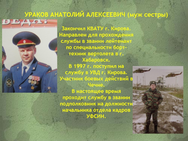 В настоящее время присвоено звание ст.лейтенант.
