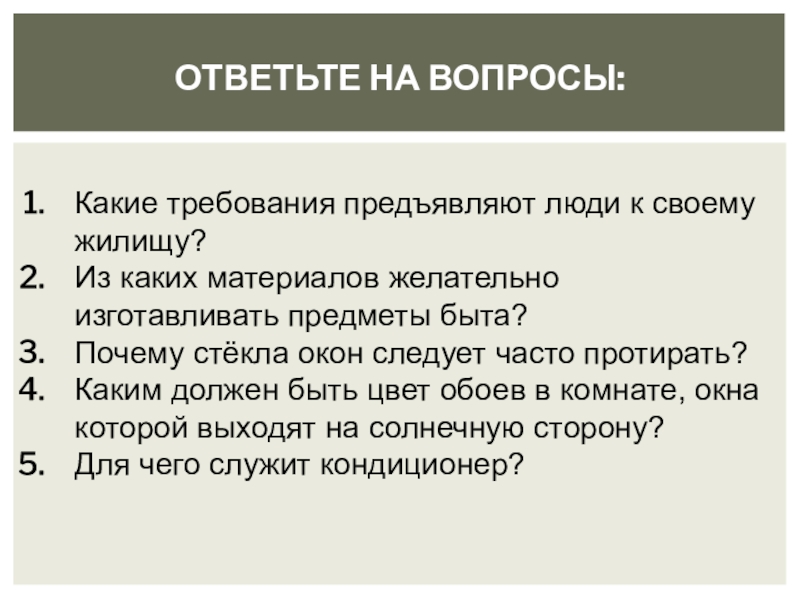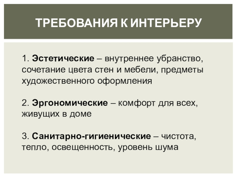 живущих в доме3. Санитарно-гигиенические – чистота, тепло, освещенность, уровень шума