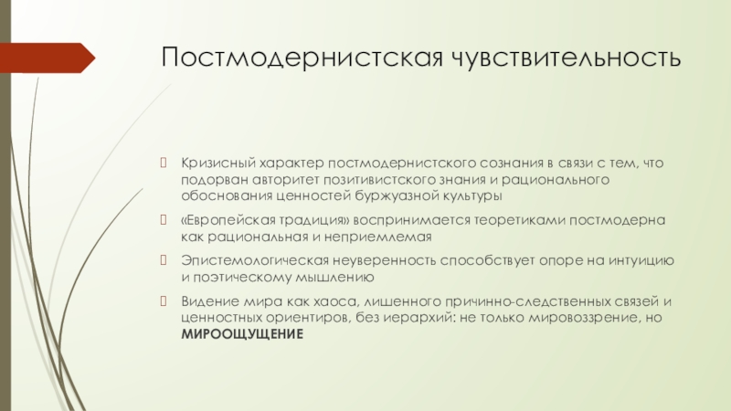 Кризисный характер постмодернистского сознания в связи с тем, что