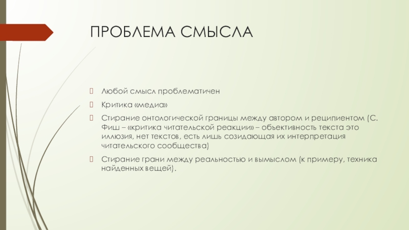 Слайд 8ПРОБЛЕМА СМЫСЛА