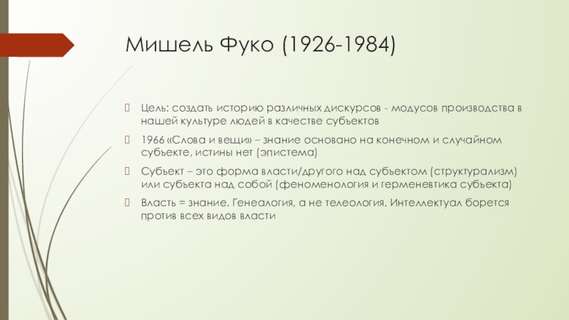 Власть = знание. Генеалогия, а не телеология. Интеллектуал борется против всех видов власти