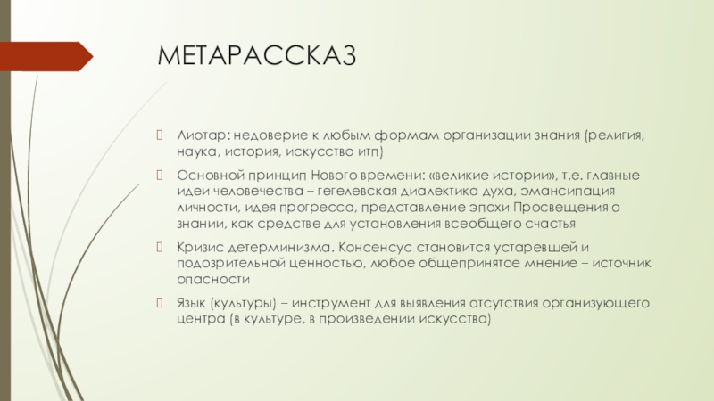 Лиотар: недоверие к любым формам организации знания (религия, наука, история,