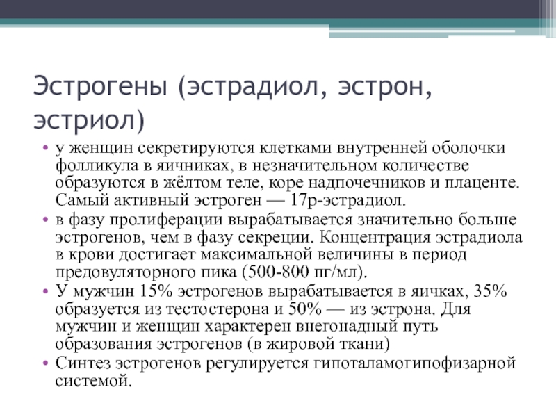Слайд 2Эстрогены (эстрадиол, эстрон, эстриол)