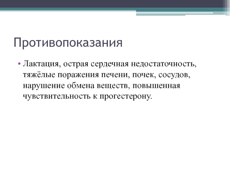 Лактация, острая сердечная недостаточность, тяжёлые поражения печени, почек, сосудов, нарушение
