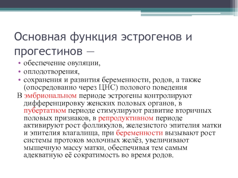 Слайд 5Основная функция эстрогенов и прогестинов —
