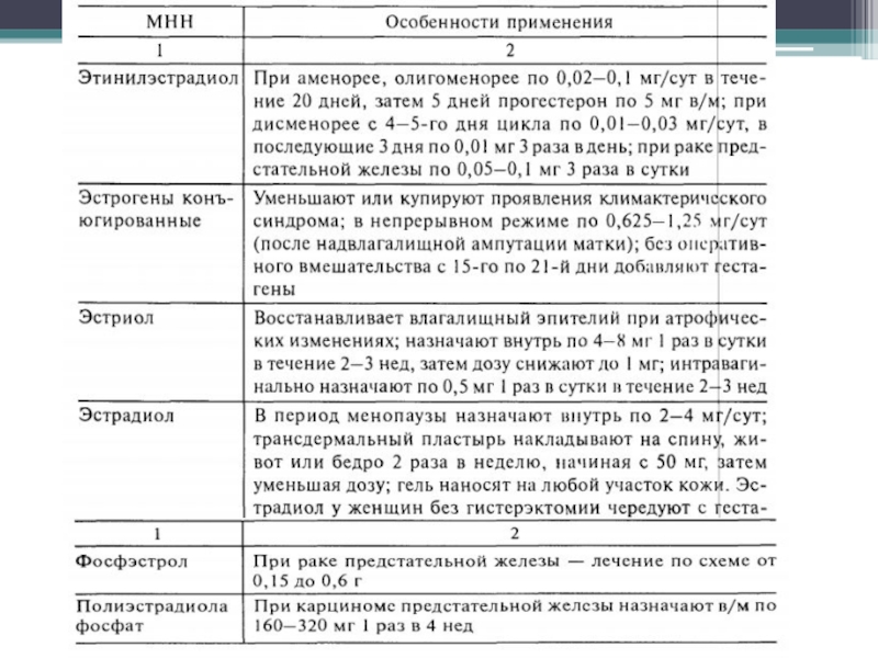К ЛС этой группы относят этинилэстрадиол, эстрогены конъюгированные, эстриол, эстрадиол,
