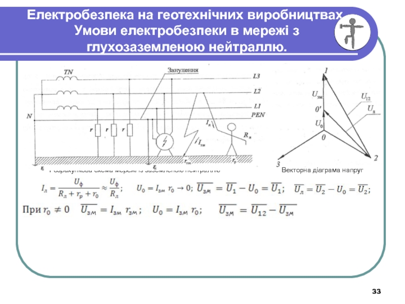 Слайд 33Електробезпека на геотехнічних виробництвах.