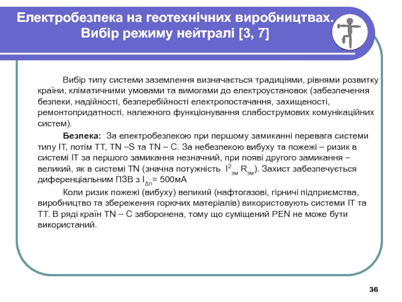 Слайд 36Електробезпека на геотехнічних виробництвах.