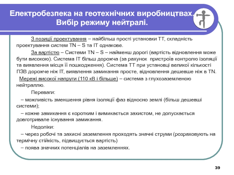 Слайд 39Електробезпека на геотехнічних виробництвах.