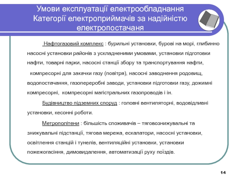 Слайд 9Умови експлуатації електрообладнання при будівництві підземних споруд [12]