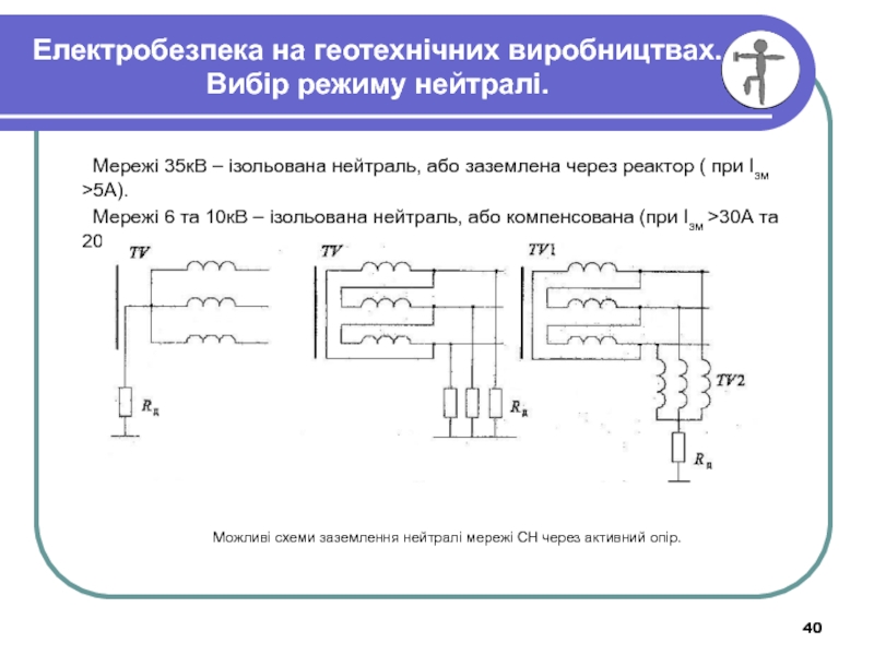 Слайд 40Електробезпека на геотехнічних виробництвах.