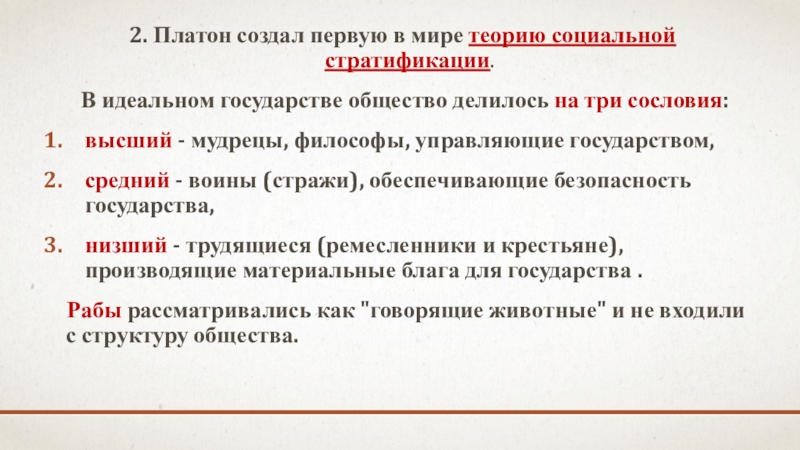 Слайд 72. Платон создал первую в мире теорию социальной стратификации.