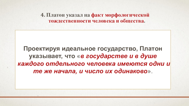 Слайд 114. Платон указал на факт морфологической тождественности человека и общества.