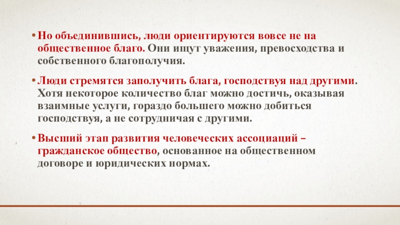 Слайд 27Но объединившись, люди ориентируются вовсе не на общественное благо. Они