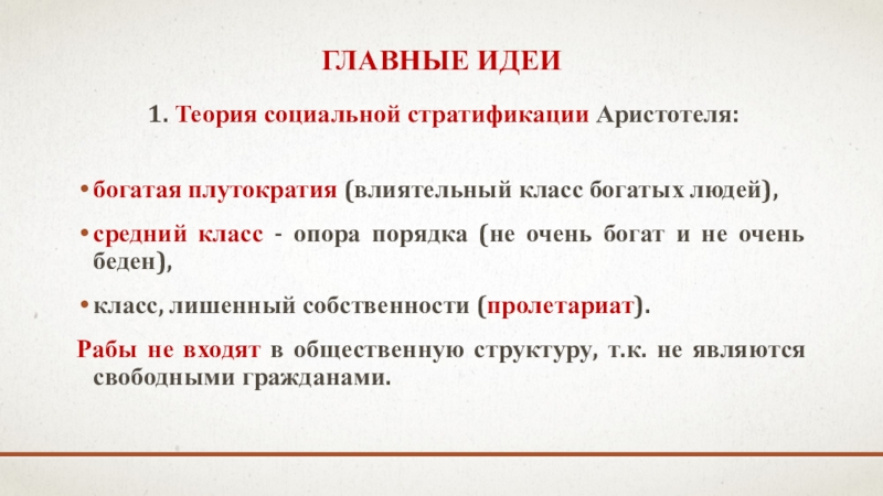 Слайд 151. Теория социальной стратификации Аристотеля: