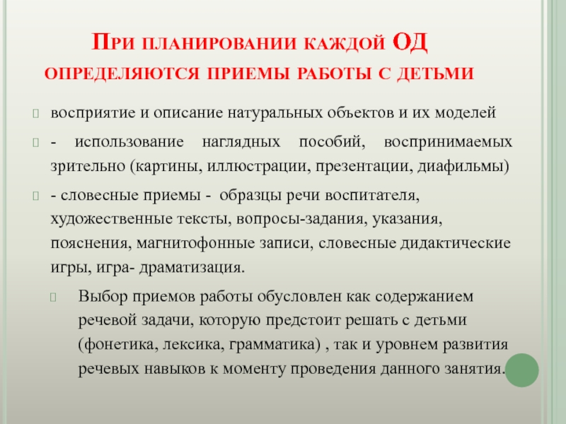 Слайд 5При планировании каждой ОД определяются приемы работы с детьми