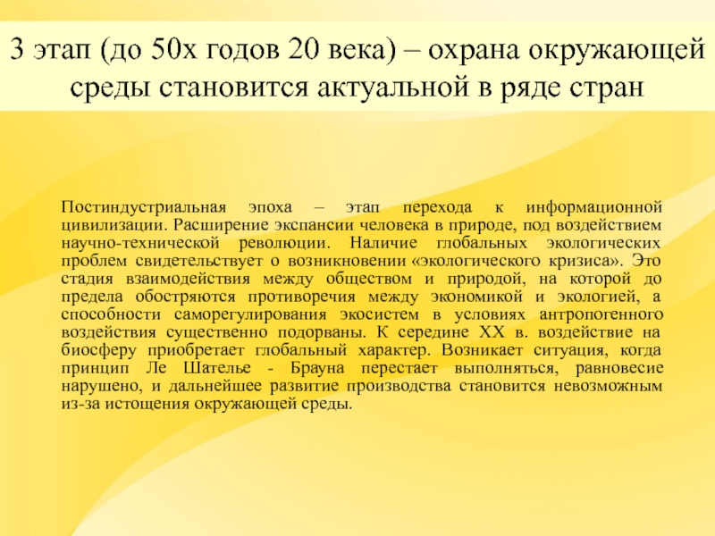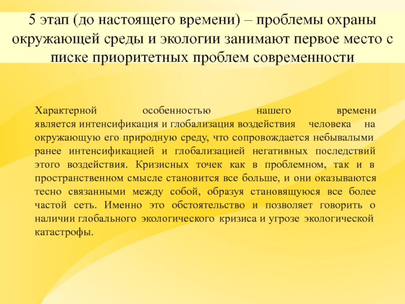 Слайд 135 этап (до настоящего времени) – проблемы охраны окружающей среды