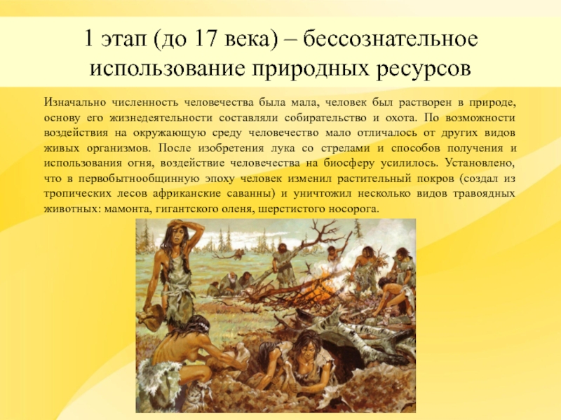 Слайд 21 этап (до 17 века) – бессознательное использование природных ресурсов