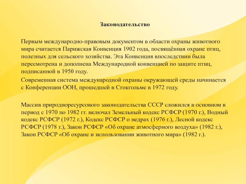 Первым международно-правовым документом в области охраны животного мира считается Парижская