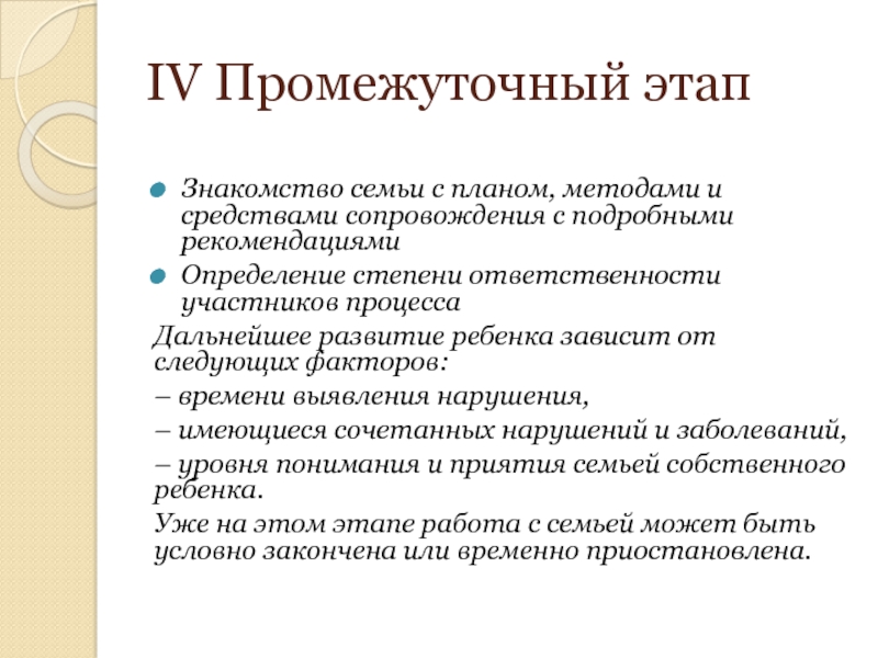Уже на этом этапе работа с семьей может быть условно закончена или временно приостановлена.