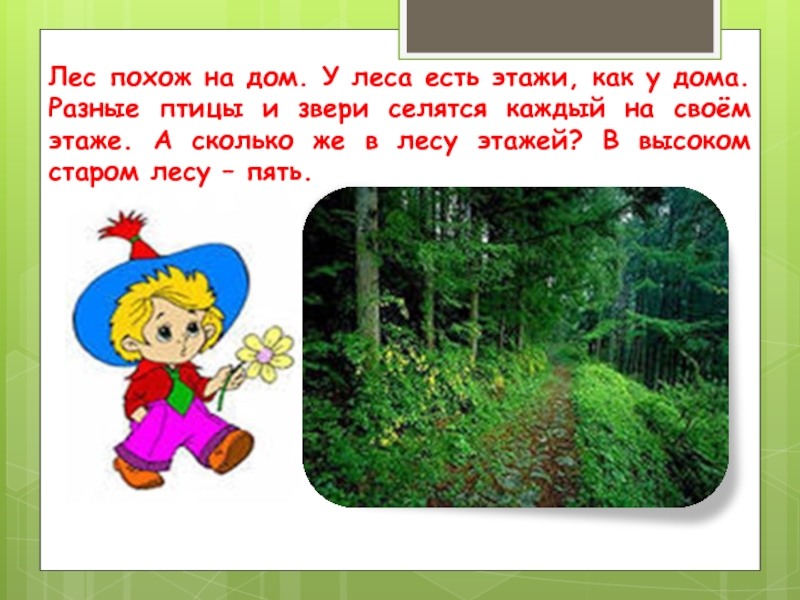 Слайд 2Лес похож на дом. У леса есть этажи, как у