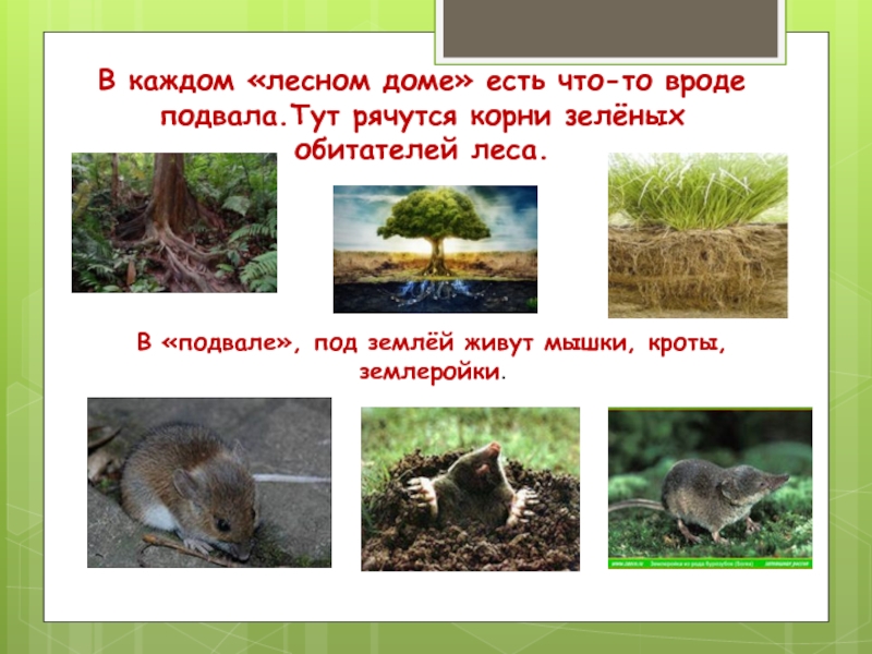Слайд 7В каждом «лесном доме» есть что-то вроде подвала.Тут рячутся корни