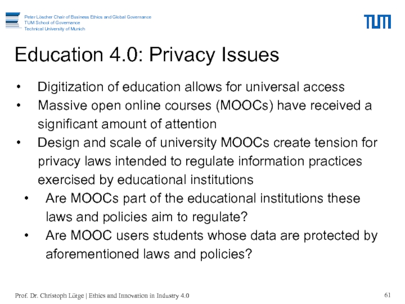 4.0Prof. Dr. Christoph Lütge | Ethics and Innovation in Industry 4.0