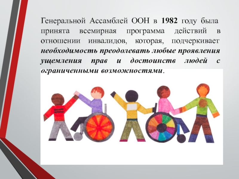 действий в отношении инвалидов, которая, подчеркивает необходимость преодолевать любые проявления