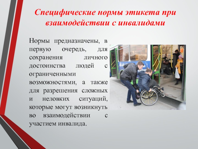 нормы взаимодействия с людьми, испытывающими трудности при передвижении: