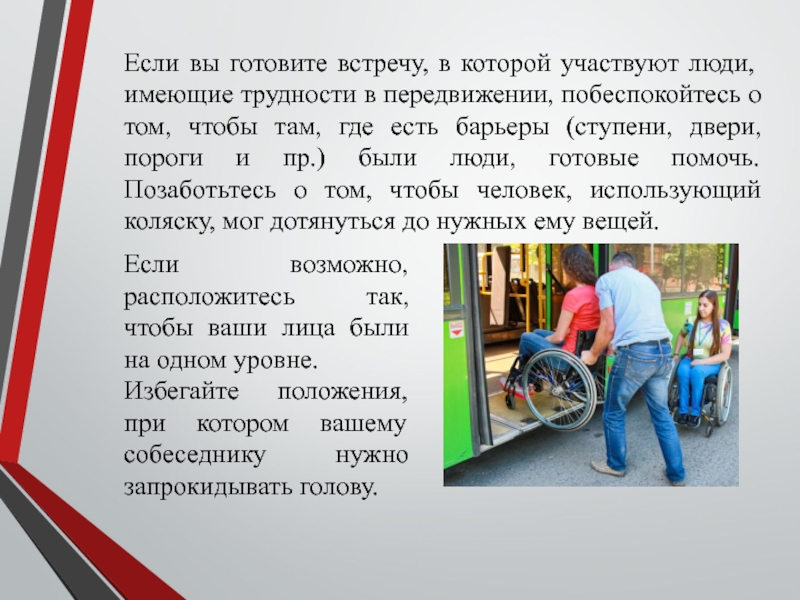 Слайд 19Если вы готовите встречу, в которой участвуют люди, имеющие трудности