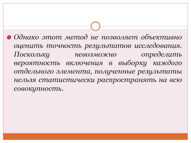 Слайд 16Однако этот метод не позволяет объективно оценить точность результатов исследования.