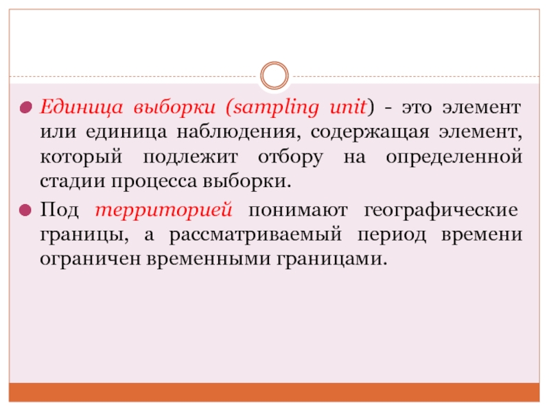 Слайд 8Единица выборки (sampling unit) - это элемент или единица наблюдения,
