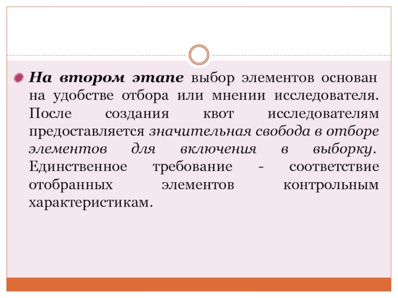 Слайд 21На втором этапе выбор элементов основан на удобстве отбора или